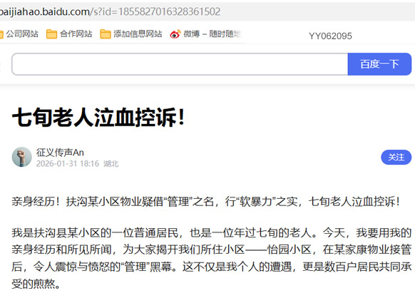 我是扶沟县某小区的一位普通居民,也是一位年过七旬的老人。今天,我要用我的亲身经历和所见所闻,为大家揭开我们所住小区——怡园小区,在某家康物业接管后,令人震惊与愤怒的“管理”黑幕。这不仅是我个人的遭遇,更是数百户居民共同承受的煎熬。
